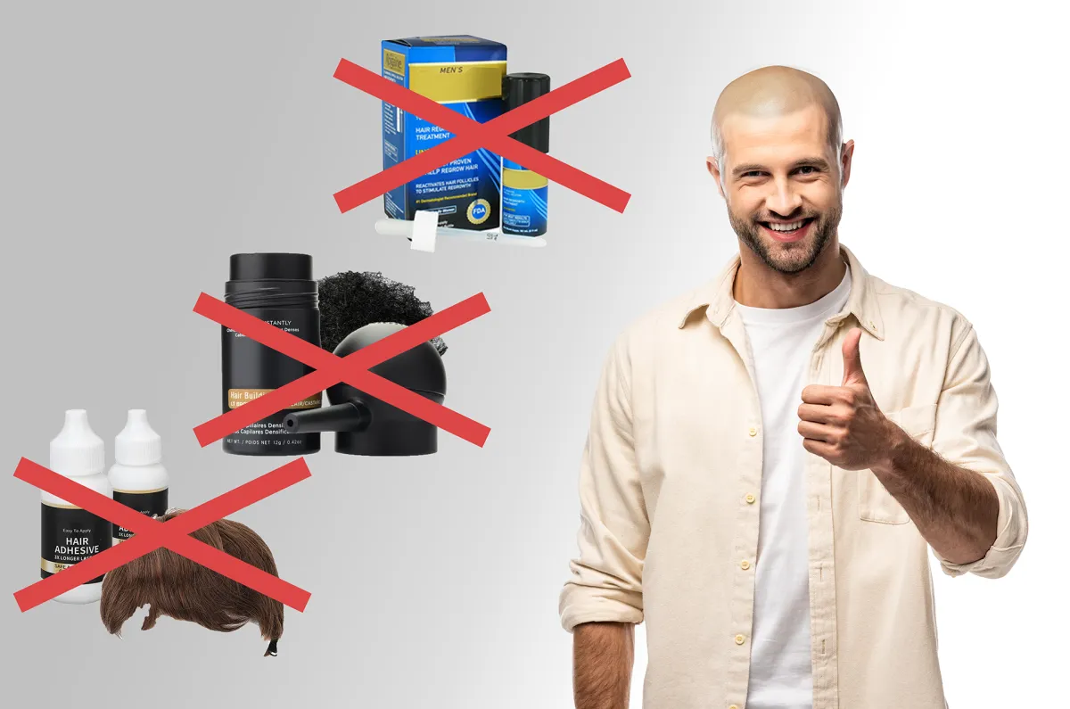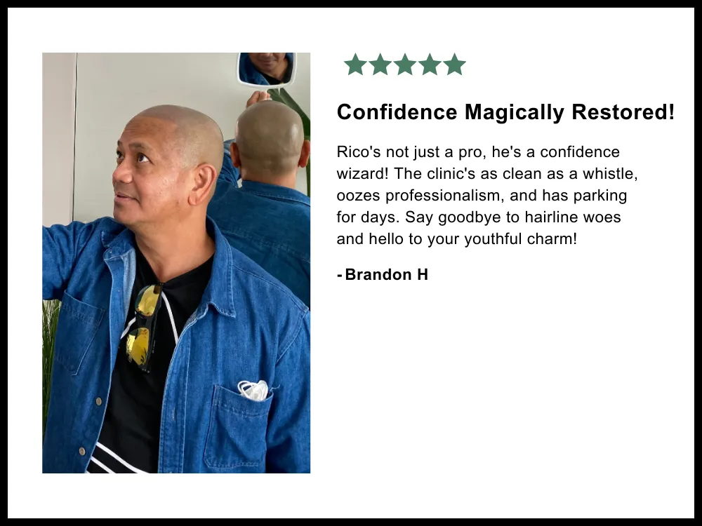 Simplify your morning routine with our low-maintenance SMP. Forget the endless grooming, the products, and the time-consuming upkeep. Our treatment is like the 'set-it-and-forget-it' of hair solutions – enjoy a sharp, stylish look with minimal effort. It's hassle-free handsomeness at its best!